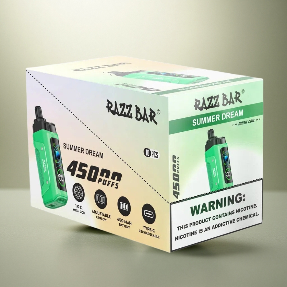 Fedezze fel a Razz Bar 45000 Puffs Eldobható Vape-et, a prémium minőségű dohányzási élményt, amely kiemelkedő teljesítményt és hosszú élettartamot kínál. Ideális választás a Hungary vape wholesale piac számára, ahol a hatékonyság és a minőség együtt jár.